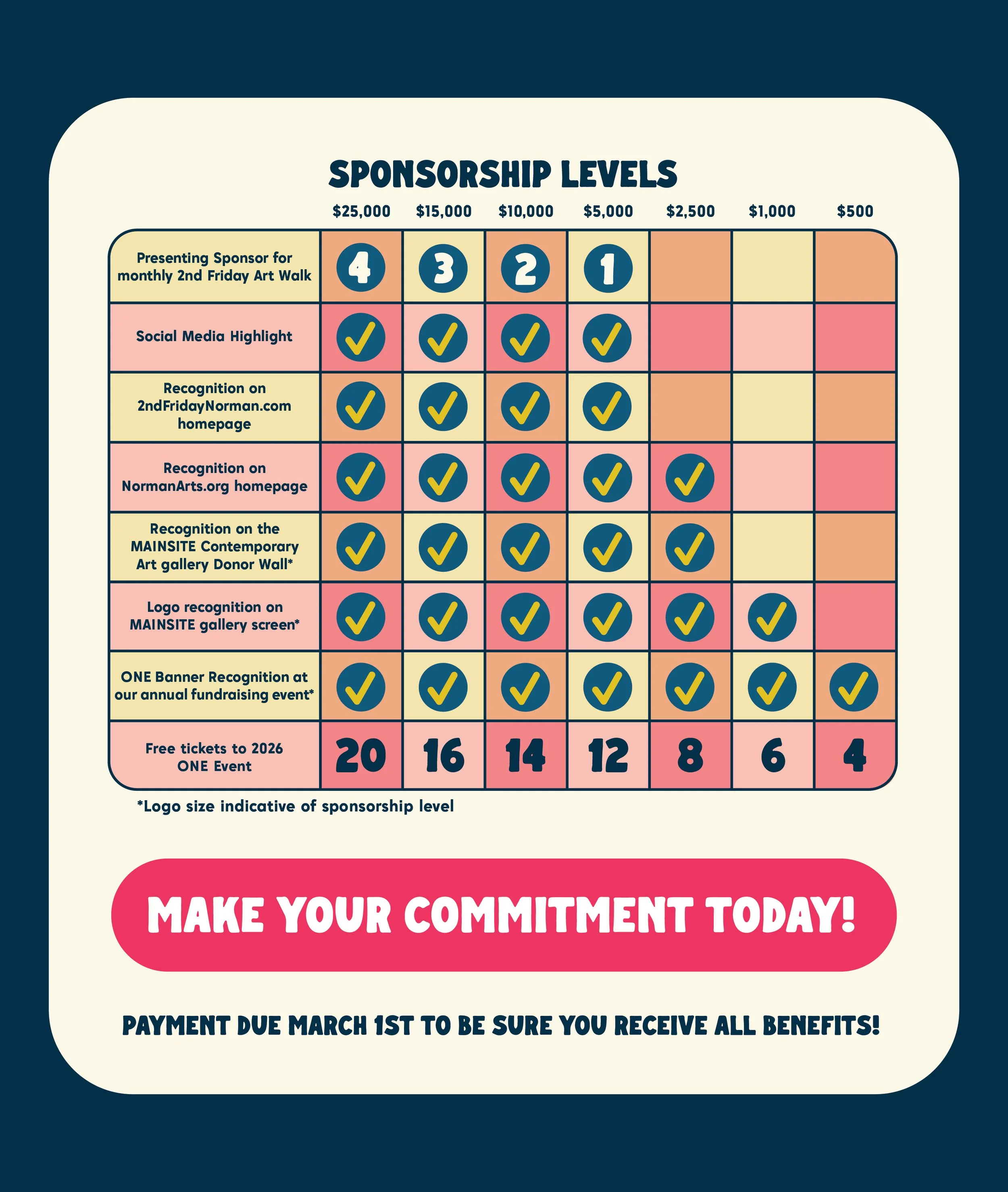 We need YOUR SUPPORT to maintain this level of performance! Make your commitment by March 1st to ensure you receive all benefits for your sponsorship level.